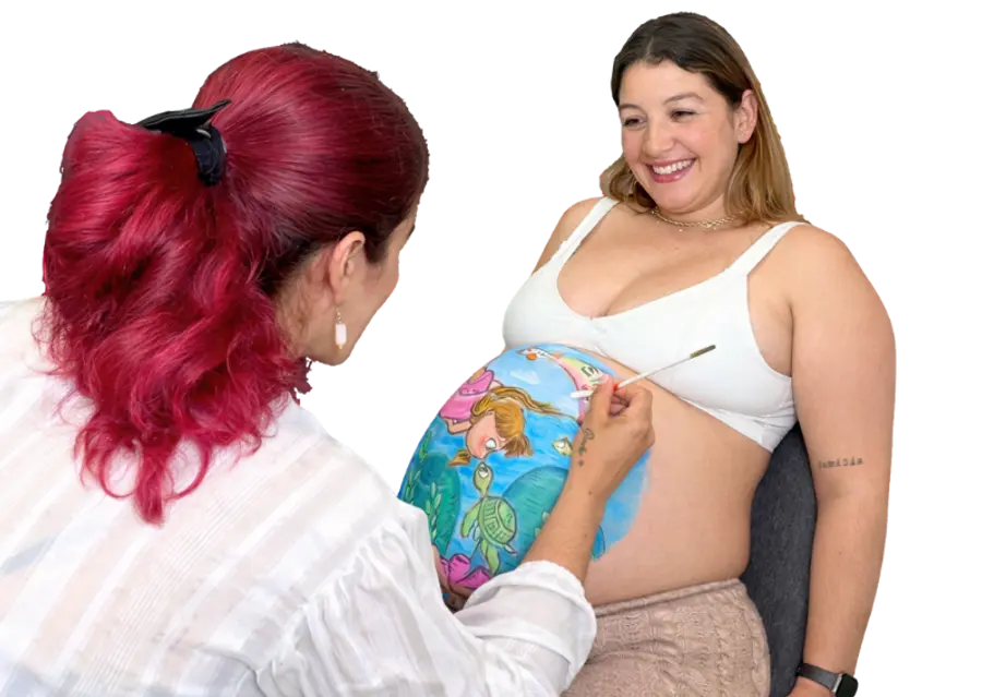 en la piel del vientre de las embarazadas, con el diseño que la madre elija,